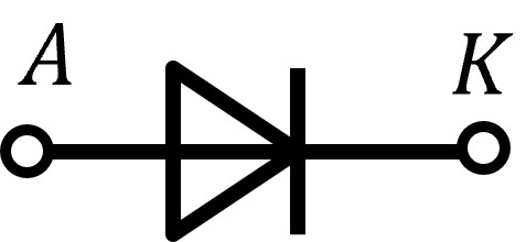 ダイオードは電流を一方向のみ通過させる素子になります。その回路記号は図1のとおりです。