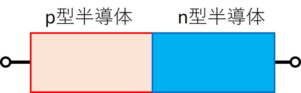 この構造はいわゆるpn接合になります。別ページにて説明したとおり、順方向に電圧をかけた場合は空乏層が狭くなり、電流が流れます。逆方向に電圧をかけた場合は空乏層が広がり、電流が流れません。