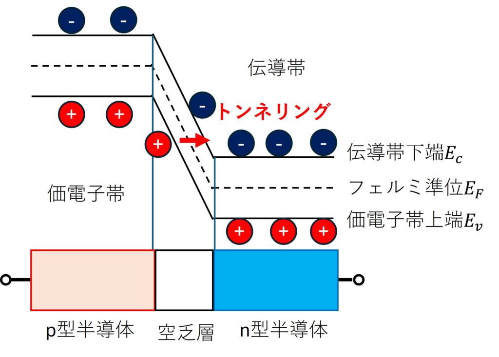 負電圧がかかることで空乏層が狭くなりトンネリングが発生する