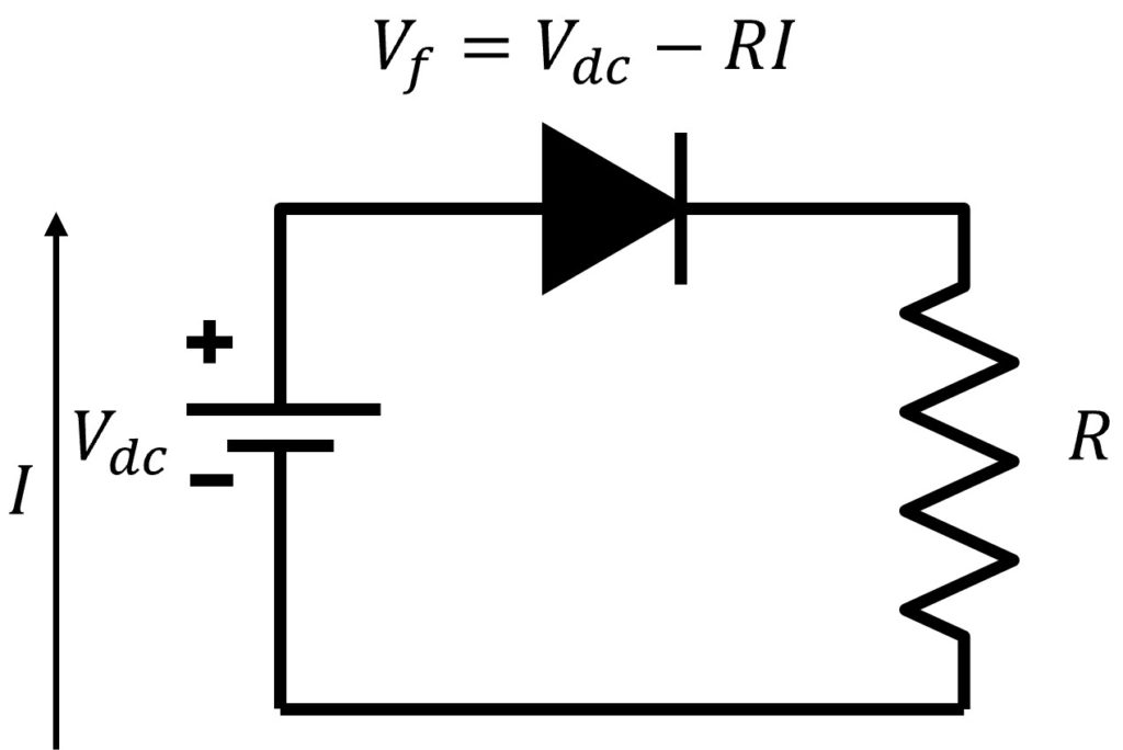 理想ダイオードにおいては順方向電圧が印加されることにより直ちに電流が流れるようになります。しかしながら実際のダイオードにおいては、pn接合の電位障壁を乗り越える必要があるため、一定の電圧を超えないと電流が流れ始めません。この電圧を順方向電圧といい、数百mV~数V程度必要となります。